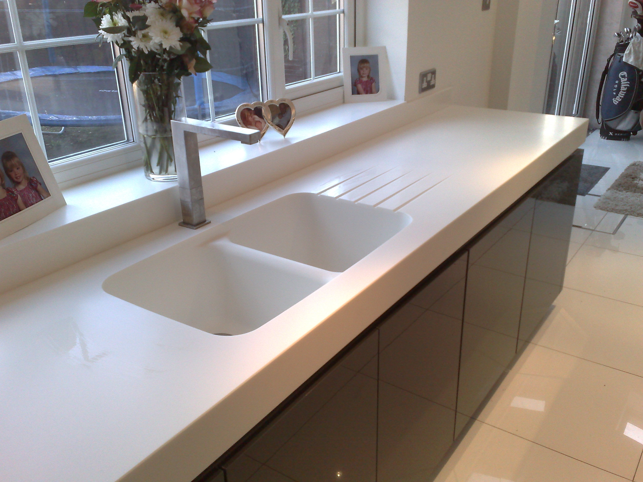 - гигиеничность – столешницы из искусственного камня монолитные, без пор, поэтому не впитывают влагу и загрязнения;